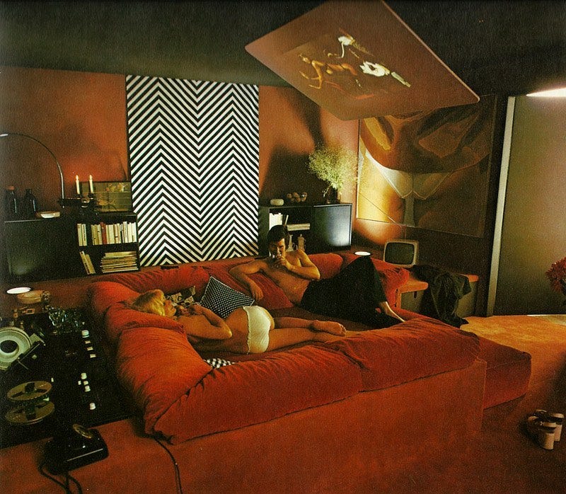 The focus here is on an environment that intends to feel inviting. Once again, the pull. The furniture suggests a feeling and a movement. It’s not a bed. It’s not a sofa. It’s not a sound system console. This isn’t even a room.